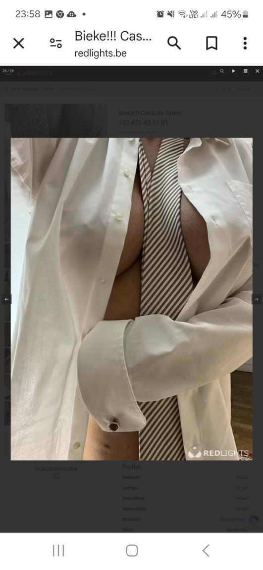 Steeds klaar om heren te verwennen. Indien je op zoek bent naar een passioneel moment ben je bij mij aan het juiste adres. Wanneer mag ik jou verwennen? Privé enkel overdag, escort savonds mogelijk, maar afspraakjes laat op de avond graag op voorhand afspreken. Aan uren chatten hebben we beide niets dus maak gerust een afspraakje. Evt ook trio met man erbij dus vmm Tot snel x liesje berichten via whatsapp op gsm vermeld via welke site je me gevonden hebt bedankt op voorhand